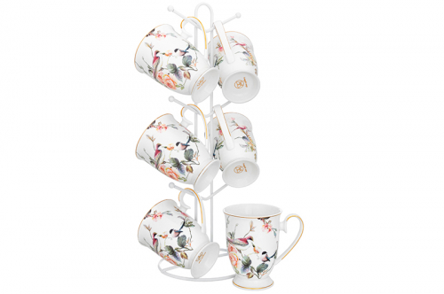 БЫЛО 2739 руб! Набор 6 кружек 400 мл "Цветущая сакура" на металлической подставке 15*15*41,5 см
