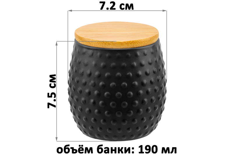 БЫЛО 301 руб! Банка д/хранения 190 мл 7,2*7,2*7,5 см "Пузырьки" черная + бамб. крышка с сил. упл.