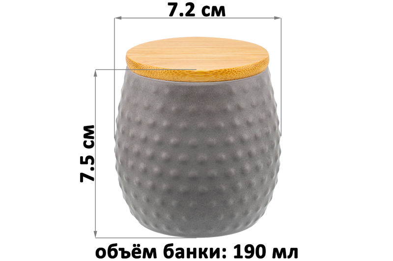 Банка из серии «Пузырьки» от Elan Gallery предназначена для организации хранения продуктов на вашей кухне. Размер ёмкости – 7,2х7,2х7,5 см, объём – 190 мл. Выполнена из керамики и имеет серый цвет, поверхность украшена выпуклым рельефом. Крышка выполнена из натурального бамбука и оснащена силиконовым уплотнителем. Изделие отлично подойдёт для хранения небольшой порции сыпучих продуктов: сахара и соли, чая и кофе, приправ и специй. Храните в ней ягоды, орехи и сухофрукты. Заполните изделие несколькими леденцами или конфетами. Подайте к столу, чтобы идеально дополнить чайную сервировку! Герметичная деревянная крышечка защитит ваши продукты от попадания грязи и пыли. Коллекция из трёх баночек монохромных цветов впишется в любой интерьер и позволит организовать хранение даже на открытых полках. Не рекомендуется применять абразивные моющие средства. Не подходит для использования в микроволновой печи. Без бамбуковой крышки подходит для посудомоечной машины. Бамбук нельзя замачивать! Поставляется в дизайнерской картонной коробке – благодаря ей вам не потребуется дополнительная подарочная упаковка. Это идеальный подарок для хозяйки, ценящей не только практичность, но и стиль. В ассортименте бренда Элан Галерея представлены банки для хранения на любой вкус. Соберите целый набор кухонных контейнеров для эстетичного хранения продуктов на вашей кухне!