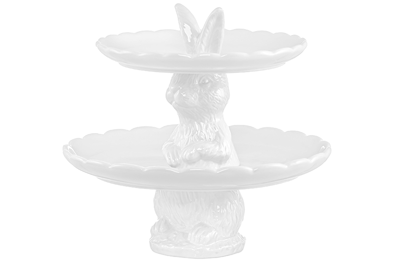 Двухярусное блюдо-этажерка «Кролик» предназначено для эстетичной сервировки вашего стола. Размер изделия – 25,5х25,5х23,5 см, размер верхнего блюда – 20х20х1 см, нижнего – 25,5х25,5х1 см. Расстояние между ярусами – 9 см. Высота ножки – 7 см. Изделие выполнено из высококачественного белого фарфора. Он не впитывает цвет продуктов и легко отмывается, благодаря чему надолго сохранит свою белизну. Каркас представляет собой фигурку кролика. Такое блюдо станет изысканным и функциональным решением для сервировки ваших любимых закусок. Расположите на ажурных тарелочках бутерброды, канапе, роллы или суши. Заполните их мясной и сырной нарезкой, кусочками овощей, фруктами и свежей зеленью. Задействуйте в качестве конфетницы: заполните блюдца конфетами, мармеладом, зефиром, безе, а также домашней выпечкой, пирожными и другими кондитерскими изделиями. Два яруса обеспечат достаточно места для любого угощения, благодаря чему этажерка станет незаменимым элементом любого праздника! Не рекомендуется применять абразивные моющие средства. Подходит для использования в посудомоечной машине и микроволновой печи. Поставляется в прочной картонной упаковке. Фарфоровая сервировочная посуда будет оригинальным подарком, для хозяйки, ценящей не только практичность, но и привлекательность. В коллекции бренда Elan Gallery вы найдёте большой выбор декоративной посуды и сувениров – каждый обязательно подберёт вариант на свой вкус. Изделия станут чудесным подарком для родных, близких и коллег. Наполните пространство вокруг себя уютом и эстетикой!