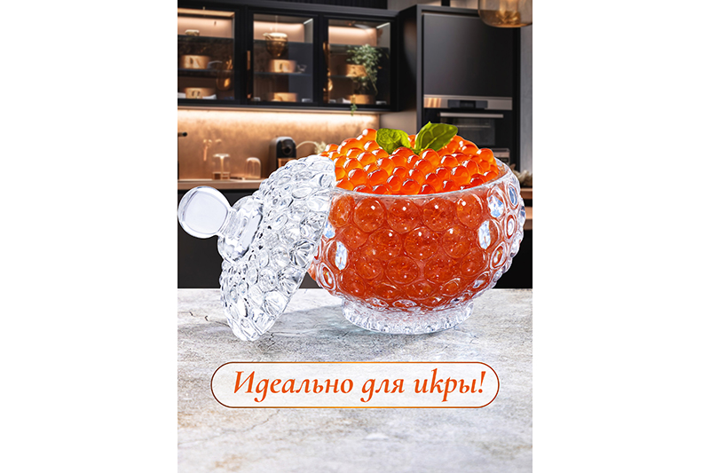Банка для хранения Elan Gallery "Пузырьки" выполнена из прозрачного стекла и украшена декоративным рельефным узором. Размер изделия – 9,5х9,5х11 см, объём – 180 мл. Высота без крышки – 6,4 см. Прозрачная баночка с крышкой подойдёт для хранения мёда, варенья, сахара и соли. Можно использовать её как ёмкость для чая, кофе и других сыпучих продуктов. Декоративная баночка круглой формы станет гармоничным дополнением при сервировке вашего стола как в будни, так и на праздник. Красивый дизайн позволит использовать её не только для хранения продуктов, но и для подачи на стол в роли медового горшочка. Положите в неё конфеты или икру, чтобы удивить гостей изящной сервировкой. Стеклянную ёмкость с крышечкой можно использовать не только как сахарницу, икорницу или соусник, но и для специй и приправ. Это позволит держать под рукой всё необходимое во время приготовления и приёма пищи. На даче медовница будет незаменимой для семейного чаепития, а также подойдёт для подачи ягод. В качестве альтернативы красивый бочонок можно использовать как шкатулку или органайзер для ватных палочек, дисков и других предметов гигиены. Сложите в неё украшения, бижутерию, а также резинки и заколки. Подходит в роли формы для свечей. Не рекомендуется применять абразивные моющие средства. Можно мыть в посудомоечной машине. Нельзя использовать в микроволновой печи. Поставляется в картонной упаковке. Красивая посуда – это отличный подарок на любой праздник. Баночка для хранения станет многофункциональным дополнением вашего кухонного инвентаря или интерьерным украшением ванной и комнаты!