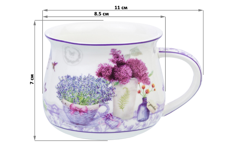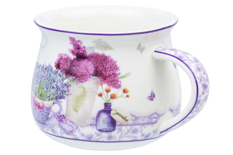 Кружка Elan Gallery "Лаванда" размером 11х8,5х7 см и объёмом 250 мл выполнена из фарфора нового поколения new bone china. New bone china сочетает в себе изящность и высокую прочность. От других видов костяного фарфора материал отличается большей экологичностью в производстве. Кружка имеет оригинальную форму бочонка. Серия "Лаванда" украшена нежным принтом на тему Прованса – французской провинции, которая славится своими лавандовыми полями и красивыми пейзажами. Изображение пышных букетов лаванды и гортензии позволит окунуться в атмосферу тепла, гармонии и южного солнца, не покидая вашей кухни или столовой! В коллекции вы найдёте любые принадлежности для эстетичной сервировки. Кружечка подходит ценителям чая и кофе, которые любят пить из красивой и необычной посуды. Это отличный вариант для того, чтобы согреться горячим какао зимой и освежиться прохладным лимонадом летом. Интересный бокал с удобной ручкой украсит ваш стол своим стильным дизайном как на праздник, так и в будни. Пейте молоко или кефир и наслаждайтесь красивой картинкой! В офисе станет незаменимым предметом для чаепития или перерыва на капучино и латте. Белая посуда из фарфора с рисунком в фиолетовых и сиреневых тонах станет украшением интерьера вашей кухни и добавит ему нотки тепла и гармонии. В отличие от керамики она не впитывает цвет и запах напитка, легко отмывается и сохраняет свой привлекательный вид долгие годы. Не рекомендуется применять абразивные моющие средства. Можно использовать в микроволновой печи и мыть в посудомоечной машине. Поставляется в красочной картонной коробке. Фарфоровая посуда с цветочками на рисунке – хороший подарок женщине или девушке на любой праздник. Благодаря стильной коробочке вам не понадобится дополнительная подарочная упаковка! Наслаждайтесь любимыми напитками из этой кружечки сами, либо сделайте сюрприз своим близким! Серия "Лаванда" позволит собрать чайный или кофейный сервиз в едином стиле и станет украшением вашего дома.