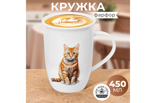 БЫЛО 340 руб! Кружка 450 мл 12*9*12,5 см "Кот Степан", NEW BONE CHINA
