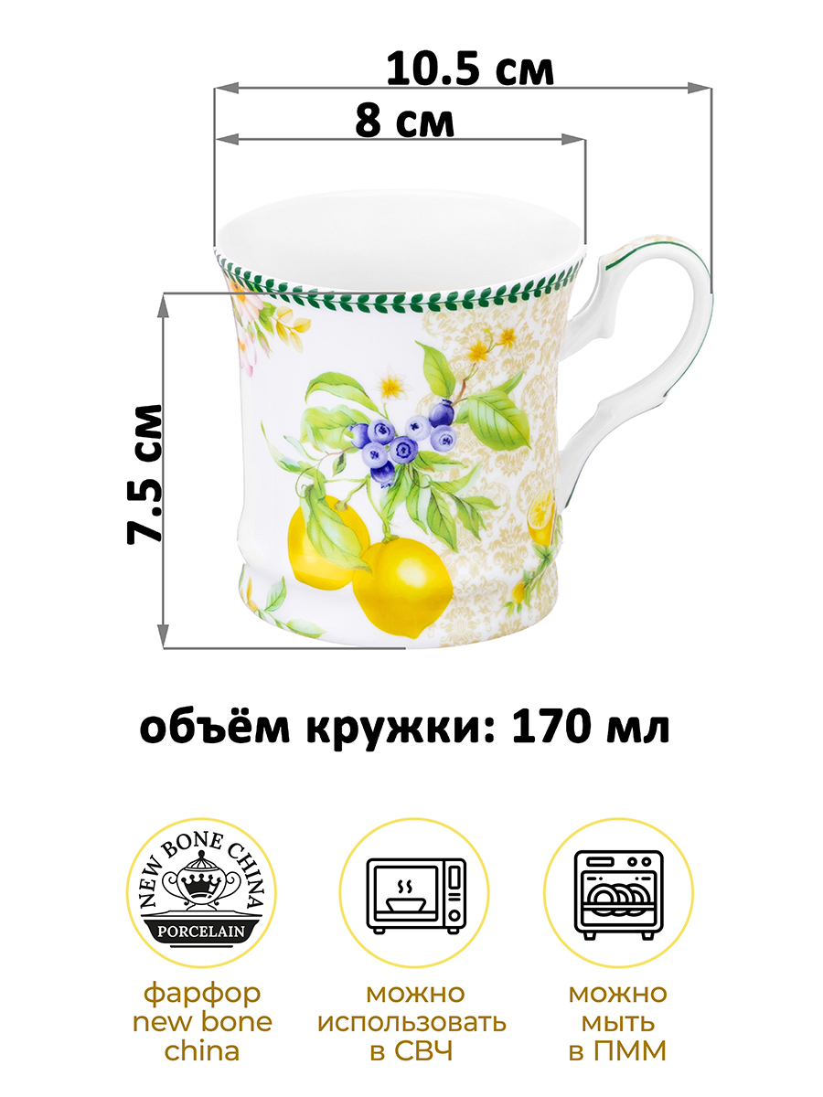 БЫЛО 364 руб! Кружка 170 мл 10,5*8*7,5 см "Лимоны" фарфор NEW BONE CHINA