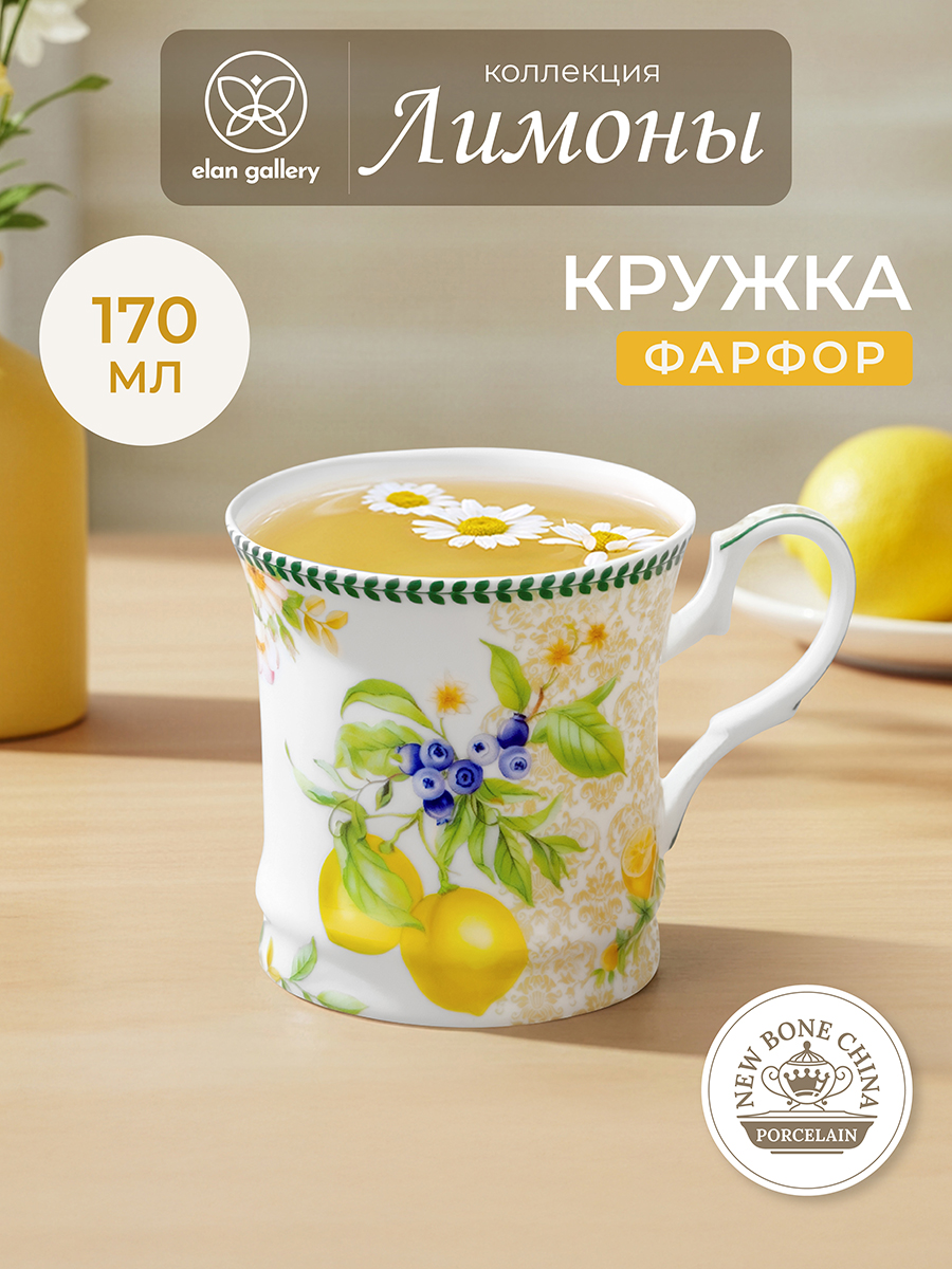 Кружка из серии «Лимоны» от Elan Gallery предназначена для эстетичной сервировки вашего стола. Размер ёмкости – 10,5х8х7,5 см, объём – 170 мл. Выполнена из фарфора нового поколения new bone china, сочетающего в себе изящность и высокую прочность. За счёт гладкости изделия легко отмываются, поэтому долго сохраняют привлекательный вид и практичны в использовании. От других видов костяного фарфора new bone china отличается большей экологичностью в производстве. Фарфоровая посуда с ярким рисунком в виде лимонов станет изящным дополнением интерьера любой кухни или столовой. Кофейная кружка поможет провести множество приятных завтраков с эспрессо, а также уютные чайные вечера с конфетами, вафлями, другими десертами и сладостями. Подойдёт ценителям чая и кофе, которые любят пить из красивой и необычной посуды. Согрейтесь зимой любимым горячим напитком: какао с маршмэллоу, ягодным чаем, горячим шоколадом. Летом освежитесь домашним лимонадом или морсом. Маленькая декоративная кружечка добавит эстетики любому чаепитию. Не рекомендуется применять абразивные моющие средства. Подходит для использования в микроволновой печи и посудомоечной машине. Поставляется в стильной картонной коробке – благодаря ей вам не потребуется дополнительная подарочная упаковка. Фарфоровая сервировочная посуда послужит оригинальным подарком для хозяйки, ценящей не только практичность, но и привлекательность. Серия «Лимоны» от бренда Элан Галерея станет украшением любого кухонного инвентаря и позволит собрать сервиз в едином стиле!