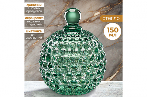 Горшочек для мёда Elan Gallery "Каскад" с крышкой выполнен из стекла и украшен декоративным рельефным узором в виде горизонтальных полосок. Размер изделия – 8,2х8,2х11 см, объём – 150 мл. Высота без крышки – 5,2 см. Баночка зелёного цвета с полосатым рельефом подойдёт для хранения мёда, варенья, сахара и соли. Можно использовать её как ёмкость для чая, кофе и других сыпучих продуктов. Декоративная баночка круглой формы станет гармоничным дополнением при сервировке вашего стола как в будни, так и на праздник. Красивый дизайн позволит использовать её не только для хранения продуктов, но и для подачи на стол. Положите в неё конфеты или икру, чтобы удивить гостей изящной сервировкой. Стеклянную ёмкость с крышечкой можно использовать не только как сахарницу, икорницу или соусник, но и для специй и приправ. Это позволит держать под рукой всё необходимое во время приготовления и приёма пищи. На даче медовница будет незаменимой для семейного чаепития, а также подойдёт для подачи ягод. В качестве альтернативы красивую вазочку с крышкой можно использовать как шкатулку или органайзер. Сложите в неё украшения и любые маленькие предметы. Подходит в роли стакана для свечи. Не рекомендуется применять абразивные моющие средства. Нельзя использовать в микроволновой печи и посудомоечной машине. Поставляется в стильной картонной упаковке. Красивая посуда – это отличный подарок на любой праздник. Медовый бочонок "Каскад" станет многофункциональным дополнением вашего кухонного инвентаря и украсит домашний интерьер!