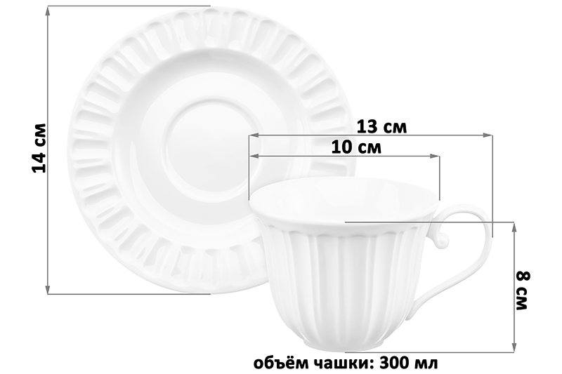 Чайная пара Elan Gallery "Ампир" выполнена из белого фарфора и украшена рельефными узорами. В набор входят: чашка размером 13х10х8 см и объёмом 300 мл, блюдечко размером 14х14х1,5 см. Чашка с блюдцем для десерта подходят ценителям чая и кофе, которые любят пить из красивой и элегантной посуды. Кружка с небольшой тарелочкой украсят ваш стол своим классическим дизайном как на праздник, так и в будни. Это идеальный вариант для того, чтобы согреться горячим чаем или ароматным капучино. Используйте блюдце как подставку для чашки, чтобы порадовать гостей изящной сервировкой. Положите на блюдо кусочек торта, домашнего пирога или пирожное. Небольшая тарелка подойдёт не только для десерта, но и закусок: сырной нарезки, сырокопчёной колбасы или свежих овощей и зелени. Идеально для завтрака, ведь хороший день начинается с чашечки любимого напитка в красивой кружке. Не рекомендуется применять абразивные моющие средства. Можно использовать в микроволновой печи и посудомоечной машине. Поставляется в красивой картонной коробке. Станет приятным подарком на любой праздник. Благодаря стильной коробочке не понадобится подарочная упаковка. Чашка с десертным блюдцем станут украшением вашей кухни или приятным сюрпризом для близких. В серии "Ампир" вы найдёте разнообразную сервировочную посуду для вашего дома, соберите целый сервиз на свой вкус!
