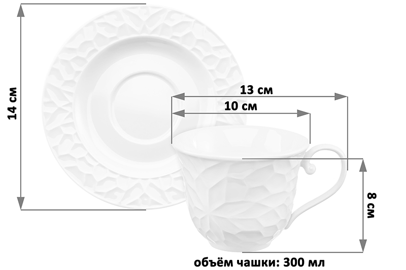 Чайная пара Elan Gallery "Витраж" выполнена из фарфора и украшена рельефным узором. В комплект входят чашка размером 13х10х8 см на 300 мл и блюдце размером 14х14х1,5 см. Используйте набор как чайный или кофейный. Кружечка с блюдцем подходят ценителям чая и кофе, которые любят пить из красивой и необычной посуды. Интересная чашка с удобной ручкой украсит ваш стол своим стильным дизайном как на праздник, так и в будни. Это идеальный вариант для того, чтобы согреться горячим чаем зимой и освежиться прохладным лимонадом летом. Используйте блюдо как подставку под чашку, чтобы порадовать гостей изящной сервировкой. Положите на сервировочное блюдце кусочек торта, домашнего пирога или пирожное. Небольшая тарелочка подойдёт не только для десерта, но и закусок: сырной нарезки, сырокопчёной колбасы или свежих овощей и зелени. Разместите на ней кусочки шашлыка или бутерброды, чтобы перекусить за чашечкой кофе. Фарфоровая посуда отличается от керамики повышенной плотностью. Фарфор не впитывает цвет кофе или чая и не деформируется от влаги, чему может быть подвержена керамическая посуда. Не рекомендуется применять абразивные моющие средства. Можно использовать в микроволновой печи и мыть в посудомоечной машине. Поставляется в стильной картонной упаковке. Наслаждайтесь любимыми напитками благодаря этой чайной паре сами, либо сделайте оригинальный подарок своим близким.