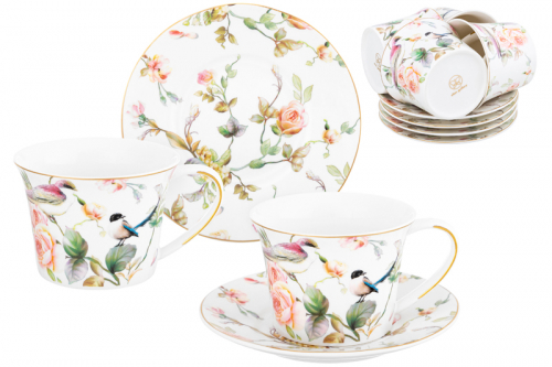 БЫЛО 3930 руб! Чайн. набор 12 пр. 250 мл "Певчие птички" NEW BONE CHINA