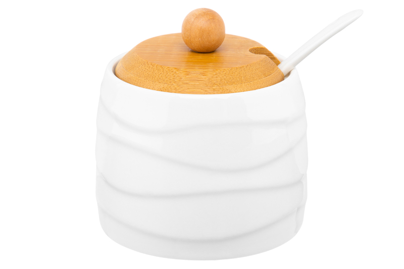 БЫЛО 394 руб! Банка д/хранения 250 мл 8,5*8,5*9 см "Айсберг волны" + ложка + дер. крышка.