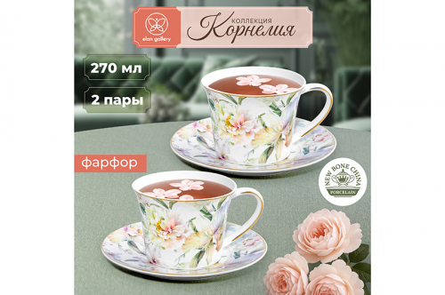 Чайный набор Elan Gallery "Певчие птички" станет украшением вашей кухни. Комплект на 6 персон выполнен из фарфора нового поколения new bone china. За счёт гладкости изделия легко отмываются, поэтому сохраняют привлекательный внешний вид и практичны в использовании. От классического костяного фарфора new bone china отличается большей экологичностью в производстве. Посуда с изображениями птичек и розовых цветов украшена золотистым кантом. Набор состоит из шести чашек объёмами по 270 мл и шести блюдец размерами по 15,5х15,5х2 см. Чайные пары подходят любителям чая и кофе, которые любят пить из красивой и необычной посуды. Благодаря праздничному чайному набору вы можете удивить гостей изящной сервировкой. Используйте блюдца как подставки под чашки. Положите на тарелочки кусочки торта, домашнего пирога или пирожные. Сервировочные тарелки подойдут не только для десерта, но и закусок: сырной нарезки, сырокопчёной колбасы или свежих овощей и зелени. Разместите на каждом блюдце кусочки шашлыка или бутерброды, чтобы угостить гостей. Не рекомендуется применять абразивные моющие средства. Из-за золотого окаймления комплект нельзя использовать в микроволновой печи и мыть в посудомоечной машине. Поставляется в стильной картонной коробке. Благодаря красочной коробочке вам не понадобится дополнительная подарочная упаковка, если вы решите сделать сюрприз своим близким. Чайный набор станет украшением вашей кухни или приятным подарком на любой праздник для тех, кто ценит изящную сервировку. В коллекции бренда Элан Галерея вы найдёте много стильных товаров для дома, кухонного инвентаря и всё для эстетичного чаепития. Выберите варианты на свой вкус!