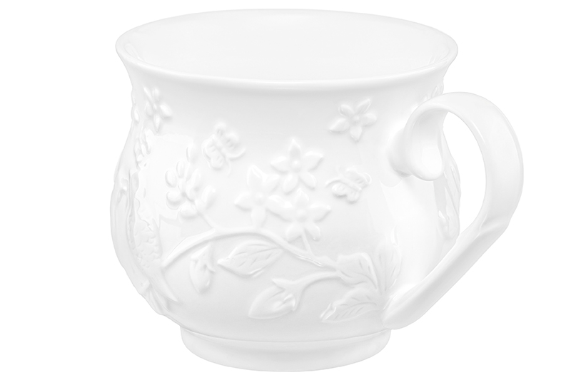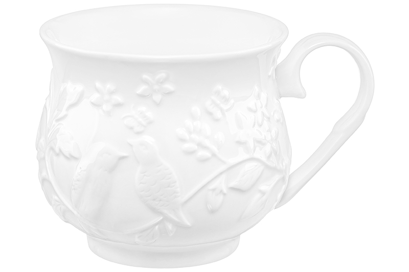 Кружка из серии «Птички на ветке» предназначена для красивой сервировки стола. Размер ёмкости – 13,5х10х9 см, объём – 480 мл. Выполнена из высококачественного белого фарфора. Элегантная кружка необычной формы украшена рельефным узором в виде лиственных веточек, на которых расположились маленькие птички. Фарфор не впитывает цвет напитков и надолго сохранит свою белизну. Благодаря лаконичному, но изысканному дизайну посуда впишется в любой интерьер. Декоративная чашка поможет провести множество приятных завтраков с капучино и латте, а также уютные чайные вечера. Она подойдёт ценителям кофе и чая, которые любят пить из красивой и необычной посуды. Согрейтесь с любимым горячим напитком зимой или освежитесь лимонадом летом. Не рекомендуется применять абразивные моющие средства. Можно использовать в микроволновой печи и посудомоечной машине. Поставляется в красивой картонной коробке – благодаря ей вам не потребуется дополнительная подарочная упаковка. Это идеальный подарок для хозяйки, ценящей не только практичность, но и стиль. Посуда из серии «Птички на ветке» преобразит вашу кухню и позволит собрать сервиз в едином стиле!