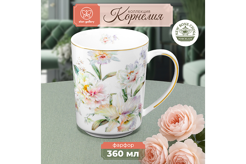 Кружка из серии "Корнелия" от Elan Gallery предназначена для эстетичной сервировки вашего стола. Размер – 12х8,5х10,5 см, объём – 360 мл. Изготовлена из фарфора нового поколения new bone china, сочетающего в себе изящность и высокую прочность. За счёт гладкости изделие легко отмывается, поэтому сохраняет привлекательный внешний вид и практично в использовании. Плотная структура материала позволяет чашкам дольше сохранять температуру напитков. От костяного фарфора new bone china отличается большей экологичностью в производстве. Поверхность изделия овивают обворожительные белые пионы. Они выполнены в манере, вдохновлённой акварельным рисунком. Тонкая золотистая окантовка служит деликатным акцентом и подчёркивает изысканность. Декоративная кружечка поможет провести множество приятных завтраков с капучино и латте, а также уютные чайные вечера с конфетами, вафлями, другими десертами и сладостями. Подойдёт ценителям чая и кофе, которые любят пить из красивой и необычной посуды. Согрейтесь зимой любимым напитком: какао с маршмеллоу, ягодным чаем или горячим шоколадом. Летом освежитесь домашним лимонадом или морсом. Не рекомендуется применять абразивные моющие средства. Бокал нельзя использовать в посудомоечной машине и микроволновой печи. Поставляется в дизайнерской картонной коробке – благодаря ей вам не потребуется дополнительная подарочная упаковка. Фарфоровая сервировочная посуда станет чудесным подарком на любой праздник и добавит эстетики ежедневному чаепитию. Серия "Корнелия" от бренда Элан Галерея добавит вашему кухонному инвентарю лёгкости и элегантности, преобразив любую сервировку!