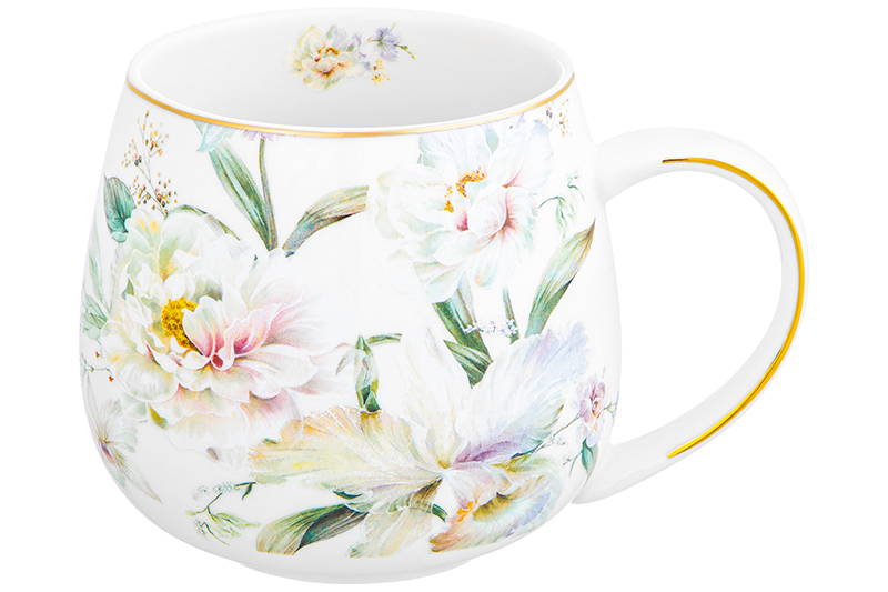 Кружка в форме бочонка из серии "Корнелия" от Elan Gallery предназначена для эстетичной сервировки вашего стола. Размер – 12,5х9,5х8,5 см, объём – 400 мл. Изготовлена из фарфора нового поколения new bone china, сочетающего в себе изящность и высокую прочность. За счёт гладкости изделие легко отмывается, поэтому сохраняет привлекательный внешний вид и практично в использовании. Плотная структура материала позволяет чашкам дольше сохранять температуру напитков. От костяного фарфора new bone china отличается большей экологичностью в производстве. Поверхность изделия овивают обворожительные белые пионы. Они выполнены в манере, вдохновлённой акварельным рисунком. Тонкая золотистая окантовка служит деликатным акцентом и подчёркивает изысканность. Декоративная кружечка поможет провести множество приятных завтраков с капучино и латте, а также уютные чайные вечера с конфетами, вафлями, другими десертами и сладостями. Подойдёт ценителям чая и кофе, которые любят пить из красивой и необычной посуды. Согрейтесь зимой любимым напитком: какао с маршмеллоу, ягодным чаем или горячим шоколадом. Летом освежитесь домашним лимонадом или морсом. Не рекомендуется применять абразивные моющие средства. Бокал нельзя использовать в посудомоечной машине и микроволновой печи. Поставляется в дизайнерской картонной коробке – благодаря ей вам не потребуется дополнительная подарочная упаковка. Фарфоровая сервировочная посуда станет чудесным подарком на любой праздник и добавит эстетики ежедневному чаепитию. Серия "Корнелия" от бренда Элан Галерея добавит вашему кухонному инвентарю лёгкости и элегантности, преобразив любую сервировку!