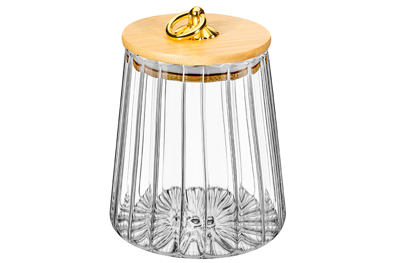 Банка с бамбуковой крышкой от бренда Elan Gallery выполнена из боросиликатного стекла и украшена рельефным узором в виде вертикальных полосок. Крышечка из натурального бамбука оснащена силиконовым уплотнителем, что обеспечивает её герметичность. Имеет металлическую ручку в форме золотого колечка с фигурным основанием. Размер изделия – 10х10х13 см, объём – 650 мл. Высота без крышки – 11 см. Прозрачная баночка подойдёт для хранения мёда, варенья, сахара и соли. Можно использовать её как ёмкость для чая, кофе и других сыпучих продуктов. Декоративная баночка станет гармоничным дополнением при сервировке вашего стола как в будни, так и на праздник. Красивый дизайн позволит использовать её не только для хранения продуктов, но и для подачи на стол. Положите в неё конфеты или икру, чтобы удивить гостей изящной сервировкой. Стеклянную ёмкость с крышечкой можно использовать не только как сахарницу или икорницу, но и для специй и приправ. Это позволит держать под рукой всё необходимое во время приготовления и приёма пищи. На даче медовница будет незаменимой для семейного чаепития, а также подойдёт для подачи ягод. В качестве альтернативы можно использовать как шкатулку или органайзер для хранения ватных палочек и дисков, а также заколок и бижутерии. Сложите в неё украшения, канцелярию или любые другие мелочи. Не рекомендуется применять абразивные моющие средства. Без крышки можно использовать в посудомоечной машине и микроволновой печи. Бамбук запрещено замачивать. Поставляется в картонной упаковке. Красивая посуда – это отличный подарок на любой праздник. Стеклянный бочонок станет многофункциональным дополнением вашего кухонного инвентаря или настоящим украшением ванной и комнаты!