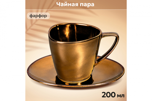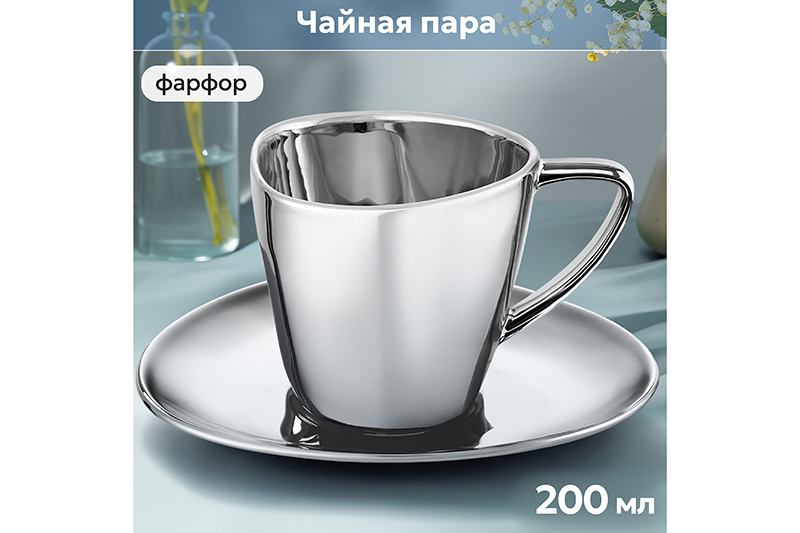 Чайная пара «Серебро» от бренда Elan Gallery станет стильным дополнением вашей кухни. Оба изделия выполнены из фарфора. Размер чашки – 11х8,3х7,5 см, объём – 200 мл. Размер блюдца – 15,6х13х2 см. Необычная геометрическая форма и серебряный оттенок придают посуде элегантный вид. Спокойный и гармоничный дизайн сочетает в себе благородство серебра и изысканность фарфора, создавая уникальный образ изделия. Фарфоровая посуда надолго сохраняет привлекательный внешний вид, не впитывает запахи и цвет напитков. Серебряное покрытие придаёт изделию неповторимый блеск и безопасно при контакте с напитками. Кружка с блюдцем подойдут ценителям чая и кофе, которые любят пить из красивой и необычной посуды. Интересная чашка с удобной ручкой украсит ваш стол стильным дизайном как на праздник, так и в будни. Согрейтесь зимой любимым напитком: какао с маршмэллоу, ягодным чаем или горячим шоколадом. Летом освежитесь домашним лимонадом или морсом. Декоративное изделие поможет организовать запоминающееся чаепитие и украсит любой кухонный сервиз. Используйте сервировочное блюдце как подставку для чашки, чтобы порадовать гостей изящной сервировкой. Положите на него пирожное, кусочек торта или домашнего пирога. Небольшая тарелочка подойдёт не только для десертов, но и для закусок: сырной нарезки, сырокопчёной колбасы или свежих овощей и зелени. Можно использовать в микроволновой печи. Нельзя использовать в посудомоечной машине, нельзя замачивать. Поставляется в дизайнерской картонной коробке – благодаря ей вам не потребуется дополнительная подарочная упаковка. Чайная пара от бренда Элан Галерея станет чудесным подарком для родных и близких!