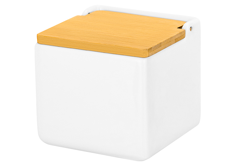Банка от Elan Gallery подойдёт для хранения разнообразных сыпучих продуктов на вашей кухне. Размер изделия – 12х12х11,5 см, объём – 700 мл. Квадратная баночка белого цвета выполнена из керамики и имеет откидную крышку из натурального бамбука. Она подойдёт для чая, кофе, сахара и соли. Заполните её специями и приправами, чтобы во время готовки всё необходимое было под рукой. Керамический контейнер послужит для эстетичного хранения круп и орехов, а также сервировки конфет, печенья и других сладостей. Бамбуковая крышка не впитывает запахи и защитит продукты от пыли и влаги. Благодаря лаконичному дизайну большая баночка впишется в интерьер любой кухни и может быть использована в роли сахарницы. Не рекомендуется применять абразивные моющие средства. Нельзя использовать в посудомоечной машине и микроволновой печи, нельзя замачивать. Керамическая ёмкость с бамбуковой крышечкой поставляется в стильной картонной коробке. Благодаря коробочке с логотипом бренда вам не понадобится дополнительная подарочная упаковка. Банка для хранения станет практичным подарком для любой хозяйки на праздник и отлично дополнит ваш кухонный инвентарь. В коллекции бренда Elan Gallery представлено много функциональных товаров для дома и красивой посуды на любой вкус!