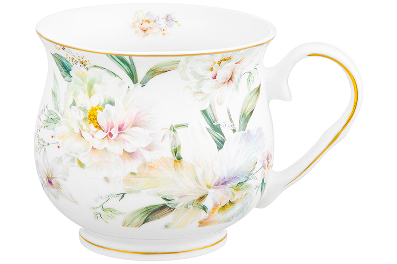 Кружка из серии "Корнелия" от Elan Gallery предназначена для эстетичной сервировки вашего стола. Размер – 13,5х10х9 см, объём – 480 мл. Изготовлена из фарфора нового поколения new bone china, сочетающего в себе изящность и высокую прочность. За счёт гладкости изделие легко отмывается, поэтому сохраняет привлекательный внешний вид и практично в использовании. Плотная структура материала позволяет чашкам дольше сохранять температуру напитков. От костяного фарфора new bone china отличается большей экологичностью в производстве. Поверхность изделия овивают обворожительные белые пионы. Они выполнены в манере, вдохновлённой акварельным рисунком. Тонкая золотистая окантовка служит деликатным акцентом и подчёркивает изысканность. Декоративная кружечка поможет провести множество приятных завтраков с капучино и латте, а также уютные чайные вечера с конфетами, вафлями, другими десертами и сладостями. Подойдёт ценителям чая и кофе, которые любят пить из красивой и необычной посуды. Согрейтесь зимой любимым напитком: какао с маршмеллоу, ягодным чаем или горячим шоколадом. Летом освежитесь домашним лимонадом или морсом. Не рекомендуется применять абразивные моющие средства. Бокал нельзя использовать в посудомоечной машине и микроволновой печи. Поставляется в дизайнерской картонной коробке – благодаря ей вам не потребуется дополнительная подарочная упаковка. Фарфоровая сервировочная посуда станет чудесным подарком на любой праздник и добавит эстетики ежедневному чаепитию. Серия "Корнелия" от бренда Элан Галерея добавит вашему кухонному инвентарю лёгкости и элегантности, преобразив любую сервировку!