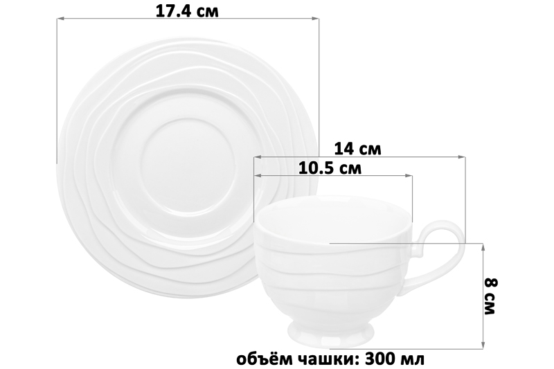 Чайная пара из серии «Айсберг волны» от Elan Gallery предназначена для эстетичной сервировки вашего стола. Размер ёмкости – 14х10,5х8 см, объём – 300 мл. Размер блюдца – 17,4х17,4х2 см. Выполнены из высококачественного фарфора. Он не впитывает цвет напитков и легко отмывается, благодаря чему надолго сохраняет свою белизну. Поверхность изделий украшают рельефные узоры в виде поперечных волн. Кофейная кружка поможет вам провести множество приятных завтраков с капучино и латте, а также уютные чайные вечера с конфетами, вафлями, другими десертами и сладостями. Подойдёт ценителям чая и кофе, которые любят пить из красивой и необычной посуды. Согрейтесь зимой любимым напитком: какао с маршмэллоу, ягодным чаем или горячим шоколадом. Летом освежитесь домашним лимонадом или морсом. Используйте сервировочное блюдце как подставку для чашки, чтобы порадовать гостей изящной сервировкой. Положите на десертную тарелку пирожное, кусочек торта или домашнего пирога. Подойдёт не только для десертов, но и для закусок: сырной нарезки, сырокопчёной колбасы или свежих овощей и зелени. Декоративные изделия позволят организовать запоминающееся чаепитие. Не рекомендуется применять абразивные моющие средства. Подходит для использования в микроволновой печи и посудомоечной машине. Поставляется в дизайнерской картонной коробке – благодаря ей вам не потребуется дополнительная подарочная упаковка. Фарфоровая сервировочная посуда будет оригинальным подарком для хозяйки, ценящей не только практичность, но и привлекательность. Серия «Айсберг волны» от бренда Элан Галерея станет украшением любого кухонного инвентаря и позволит собрать красивый сервиз в едином стиле!