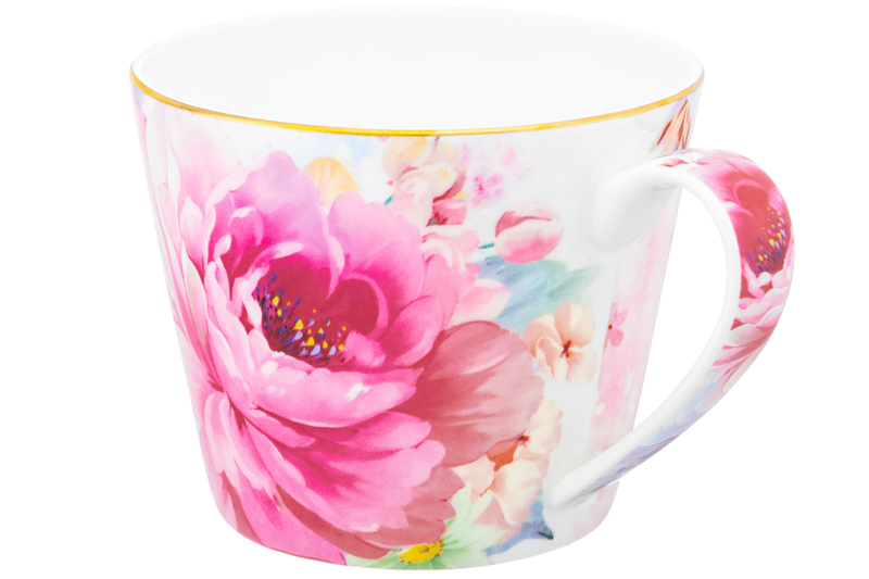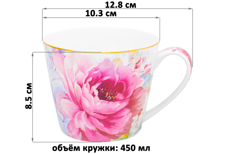 Кружка Elan Gallery "Акварель" размером 12,8х10,3х8,5 см и объёмом 450 мл выполнена из фарфора нового поколения new bone china. Благодаря современным технологиям он не уступает другим видам фарфора в прочности, но при этом экологичнее в производстве. Кружечка украшена рисунком с цветами и добавит интерьеру вашей кухни или столовой ярких красок. Фарфоровая кружка подходит ценителям чая и кофе, которые любят пить из красивой и необычной посуды. Это идеальный вариант для того, чтобы согреться горячим напитком зимой и освежиться прохладным лимонадом летом. Интересная кружка с удобной ручкой украсит ваш стол своим стильным дизайном как на праздник, так и в будни. Используйте её под любые напитки, например, как кофейную под капучино или латте. Красивый бокал станет украшением любого стола и незаменимым предметом на чаепитии или чайной церемонии! Не рекомендуется применять абразивные моющие средства. Не рекомендуется использовать в микроволновой печи и мыть в посудомоечной машине. Поставляется в стильной картонной упаковке. Станет приятным подарком для женщины. Оригинальный бокал – это отличный сюрприз для любителей красивой посуды на праздник. Благодаря красочной коробочке вам не придётся искать дополнительную подарочную упаковку! В коллекции бренда Elan Gallery представлено много красивой посуды, кухонного инвентаря, предметов декора и других товаров для дома. Здесь вы найдёте всё для эстетичной сервировки и создания уюта!