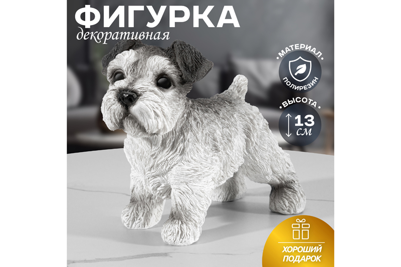Декоративная фигурка Elan Gallery "Цвергшнауцер" размером 16х7,5х13 см способна преобразить любое помещение! Статуэтка в виде собачки выполнена из полирезина. Полирезин – это современный материал, который славится своей лёгкостью, устойчивостью к влаге и солнечным лучам. Он не выделяет вредных веществ и не имеет запаха. Полирезин легко поддается обработке, поэтому изделия из него славятся своей реалистичностью и проработанными деталями. Собака с добрыми глазками и чёрным носиком станет оригинальным элементом декора и принесёт в дом красоту и уют. Настольная фигурка украсит интерьер гостиной или спальни и создаст тёплую атмосферу. Превратите вашу кухню или дачу в уютное место благодаря этому сувениру! Вы можете разместить игрушку на полке, столе или создать декоративную композицию вместе с другими украшениями на камине. Пёсик поможет украсить ваше рабочее место в офисе и сделает кабинет уютнее! Не рекомендуется применять абразивные моющие средства. В коллекции Elan Gallery представлено много товаров для дома, предметов декора и сувенирной продукции для создания уюта в любом пространстве. Фигура станет чудесным подарком для ваших близких и коллег на любой праздник. Статуэтки милых животных особенно понравятся владельцам домашних питомцев, а также станут приятным сюрпризом для мальчика или девочки. Порадуйте своего ребенка, мечтающего о забавном хвостатом друге. Пусть красивый пёсик будет символом вашей дружбы и создаст хорошее настроение взрослым и детям!