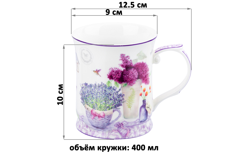 Кружка Elan Gallery "Лаванда" размером 12,5х9х10 см и объёмом 400 мл выполнена из фарфора нового поколения new bone china. New bone china сочетает в себе изящность и высокую прочность. От других видов костяного фарфора материал отличается большей экологичностью в производстве. Серия "Лаванда" украшена нежным принтом на тему Прованса – французской провинции, которая славится своими лавандовыми полями и красивыми пейзажами. Изображение пышных букетов лаванды и гортензии позволит окунуться в атмосферу тепла, гармонии и южного солнца, не покидая вашей кухни или столовой! В коллекции вы найдёте любые принадлежности для эстетичной сервировки. Кружечка подходит ценителям чая и кофе, которые любят пить из красивой и необычной посуды. Это отличный вариант для того, чтобы согреться горячим какао зимой и освежиться прохладным лимонадом летом. Интересный бокал с удобной ручкой украсит ваш стол своим стильным дизайном как на праздник, так и в будни. Пейте молоко или кефир и наслаждайтесь красивой картинкой! В офисе станет незаменимым предметом для чаепития или перерыва на капучино и латте. Белая посуда из фарфора с рисунком в фиолетовых и сиреневых тонах станет украшением интерьера вашей кухни и добавит ему нотки тепла и гармонии. В отличие от керамики она не впитывает цвет и запах напитка, легко отмывается и сохраняет свой привлекательный вид долгие годы. Не рекомендуется применять абразивные моющие средства. Можно использовать в микроволновой печи и мыть в посудомоечной машине. Поставляется в красочной картонной коробке. Фарфоровая посуда с цветочками на рисунке – хороший подарок женщине или девушке на любой праздник. Благодаря стильной коробочке вам не понадобится дополнительная подарочная упаковка! Наслаждайтесь любимыми напитками из этой кружечки сами, либо сделайте сюрприз своим близким! Серия "Лаванда" позволит собрать чайный или кофейный сервиз в едином стиле и станет украшением вашего дома.
