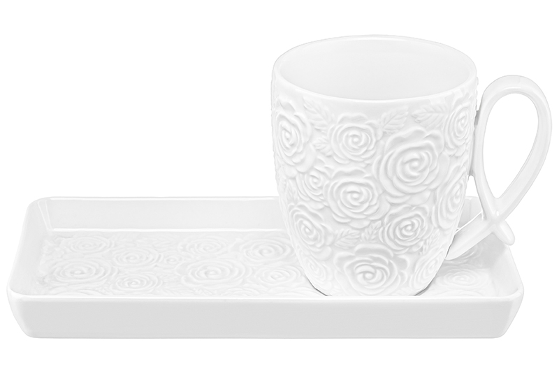 Чайная пара из серии «Розы» от Elan Gallery предназначена для эстетичной сервировки вашего стола. Размер ёмкости – 11х8,3х9,5 см, объём – 300 мл. Размер блюдца – 20,5х10х2 см. Выполнены из высококачественного белого фарфора. Он не впитывает цвет напитков и легко отмывается, благодаря чему надолго сохраняет свою белизну. Поверхность изделий украшают рельефные узоры в виде пышных бутонов роз. Кофейная кружка поможет вам провести множество приятных завтраков с капучино и латте, а также уютные чайные вечера с конфетами, вафлями, другими десертами и сладостями. Подойдёт ценителям чая и кофе, которые любят пить из красивой и необычной посуды. Согрейтесь зимой любимым горячим напитком: какао с маршмэллоу, ягодным чаем или горячим шоколадом. Летом освежитесь домашним лимонадом или морсом. Используйте сервировочное блюдце как подставку для чашки, чтобы порадовать гостей изящной сервировкой. Положите на десертную тарелку пирожное, кусочек торта или домашнего пирога. Подойдёт не только для десертов, но и для закусок: сырной нарезки, сырокопчёной колбасы или свежих овощей и зелени. Декоративные изделия позволят организовать запоминающееся чаепитие. Не рекомендуется применять абразивные моющие средства. Подходят для использования в микроволновой печи и посудомоечной машине. Поставляются в дизайнерской картонной коробке – благодаря ей вам не потребуется дополнительная подарочная упаковка. Фарфоровая сервировочная посуда будет оригинальным подарком для хозяйки, ценящей не только практичность, но и привлекательность. Серия «Розы» от бренда Элан Галерея станет украшением любого кухонного инвентаря и позволит собрать красивый сервиз в едином стиле!