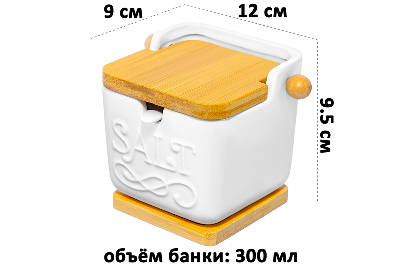 Банка для сыпучих продуктов из серии «Bon Appetit» от Elan Gallery послужит для организации хранения на вашей кухне. Размер ёмкости – 12х9х9,5 см, объём – 300 мл. Выполнена из высококачественного белого фарфора и украшена изысканной надписью «Salt» («Соль»). Фарфор не впитывает цвет продуктов и легко отмывается, благодаря чему надолго сохранит свою белизну. Откидная крышка и подставка выполнены из бамбука. «Bon Appetit» – это коллекция посуды в стиле френч-винтаж, которая создаст на вашей кухне атмосферу романтики и уюта. Отличительные черты серии – это сочетание светлых оттенков и картинки, стилизованной под ретро. Лаконичные фразы на посуде добавят изысканности и утончённости каждому приёму пищи. Изделие отлично подойдёт не только для соли, но и для сахара, чая и кофе, приправ и специй. Храните в нём ягоды, орехи и сухофрукты, а также небольшую порцию конфет, леденцов и мармеладок. Фарфоровая ложечка поможет набрать необходимое количество продукта и компактно помещается в баночке благодаря выемке на крышке. Герметичная откидная крышка защитит ваши продукты от попадания пыли и грязи. Она легко открывается, благодаря чему баночка станет удобным и стильным дополнением любой чайной сервировки. Не рекомендуется применять абразивные моющие средства. Не подходит для использования в посудомоечной машине и микроволновой печи. Бамбук нельзя замачивать! Поставляется в дизайнерской картонной коробке – благодаря ей вам не потребуется дополнительная подарочная упаковка. Это идеальный подарок для хозяйки, ценящей не только практичность, но и привлекательность. Коллекция посуды «Bon Appetit» от бренда Элан Галерея впишется в любой интерьер и придаст шарма и элегантности сервировке ваших блюд!