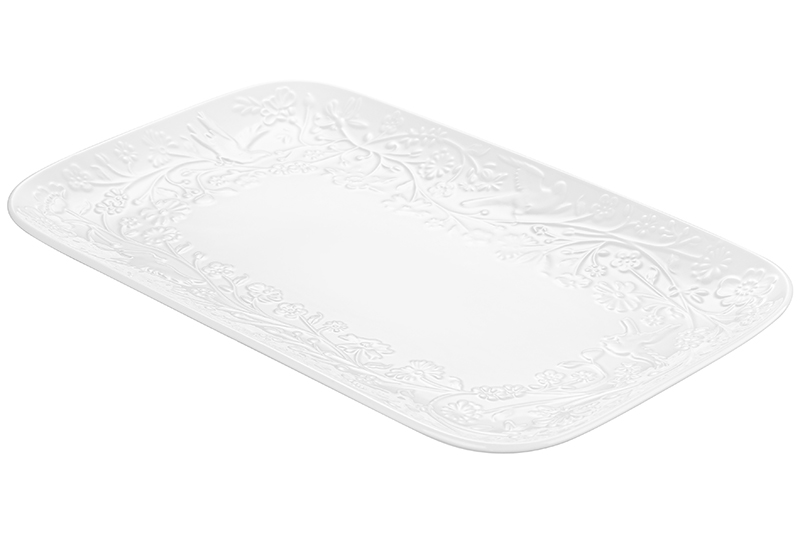 Прямоугольное блюдо Elan Gallery "Райский сад" размером 31х20,5х2,5 см выполнено из белого фарфора в классическом дизайне. Тарелочка подойдет для подачи рыбных, мясных блюд и закусок. Благодаря её вместительности можно красиво подать целую курицу, рыбу и любое мясо. Можно использовать для сервировки нарезки, овощей или фруктов для угощения большого количества гостей. Посуда серии украшена изящным рельефным узором в виде птиц в цветущем саду. Эргономичная форма тарелки позволит использовать её как поднос. Удобно разместить на сервировочном блюде кусочки торта, пирога и другие сладости. Подойдёт для эстетичной подачи суши, роллов и бутербродов. Фарфоровая посуда отличается от керамической повышенной плотностью. Фарфор не впитывает цвет продуктов и не деформируется от влаги, чему может быть подвержена керамика. Избегать резких перепадов температур и беречь от механических повреждений. Не рекомендуется применять абразивные моющие средства. Можно использовать в микроволновой печи и мыть в посудомоечной машине. Поставляется в красочной картонной коробке. Станет отличным подарком для любой хозяйки, которая ценит стильную сервировку. Благодаря стильной коробочке не потребуется подарочная упаковка. Понравится любителям посуды в скандинавском стиле. Серия "Райский сад" позволит собрать сервиз в едином стиле и станет украшением вашего дома.