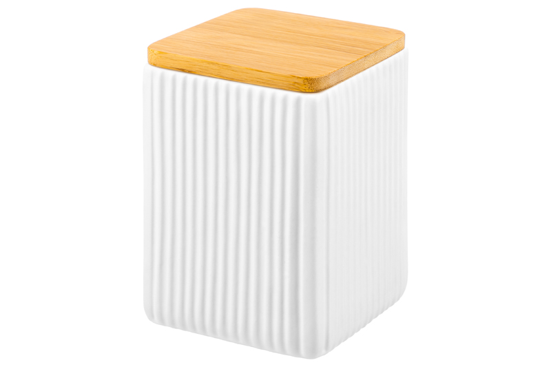 Банка от Elan Gallery предназначена для организации хранения продуктов на вашей кухне. Размер ёмкости – 10х10х15 см, объём – 1 литр. Выполнена из керамики и имеет белый цвет, поверхность украшена рельефом из крупных вертикальных полос. Крышка выполнена из натурального бамбука и оснащена силиконовым уплотнителем. Изделие отлично подойдёт для хранения сыпучих продуктов: сахара и соли, чая и кофе, приправ и специй. Храните в баночке ягоды, орехи и сухофрукты. Заполните её любимыми сладостями: леденцами, конфетами или печеньем. Подайте к столу, чтобы идеально дополнить чайную сервировку! Герметичная деревянная крышечка защитит ваши продукты от попадания грязи и пыли. Коллекция из двух баночек лаконичных цветов впишется в любой интерьер и позволит организовать хранение даже на открытых полках. Не рекомендуется применять абразивные моющие средства. Не подходит для использования в микроволновой печи. Без бамбуковой крышки подходит для посудомоечной машины. Бамбук нельзя замачивать! Поставляется в дизайнерской картонной коробке – благодаря ей вам не потребуется дополнительная подарочная упаковка. Это идеальный подарок для хозяйки, ценящей не только практичность, но и стиль. В ассортименте бренда Элан Галерея представлены банки для хранения на любой вкус. Соберите целый набор кухонных контейнеров для эстетичного хранения продуктов на вашей кухне!