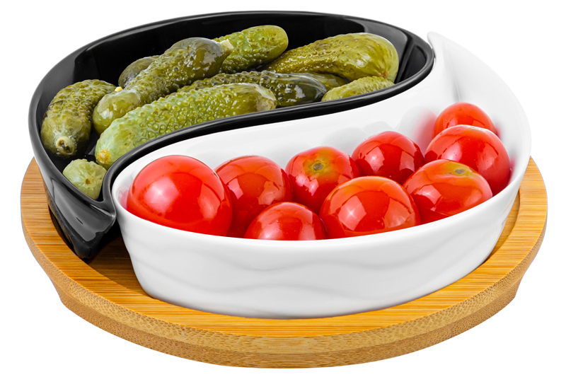 Тарелка под оливки «Инь-Янь» из серии «Айсберг волны» от Elan Gallery подойдёт для эстетичной сервировки вашего стола. Общий размер изделия – 15х15х3,5 см. Размер каждой секции – 14х7х2,5 см, объём – 100 мл. Выполнена из высококачественного фарфора. Он не впитывает цвет продуктов и легко отмывается, благодаря чему надолго сохраняет свой цвет. Поверхность изделий украшают рельефные узоры в виде поперечных волн. Включает ёмкости чёрного и белого цвета. Подставка выполнена из натурального бамбука. Размер – 15х15х1 см, внутренний диаметр – 13,5 см. Менажница поможет красиво подавать маслины, орехи или сыры. Она станет незаменимым элементом праздничных обедов или неторопливых завтраков. Послужит в качестве конфетницы, позволив угостить себя и гостей любимыми сладостями: конфетам, мармеладом, леденцами и безе. Не рекомендуется применять абразивные моющие средства. Без бамбуковой подставки подходит для использования в посудомоечной машине и микроволновой печи. Бамбук нельзя замачивать! Поставляется в дизайнерской картонной коробке – благодаря ей вам не потребуется дополнительная подарочная упаковка. Фарфоровая сервировочная посуда будет оригинальным подарком для хозяйки, ценящей не только практичность, но и привлекательность. Серия «Айсберг волны» от бренда Элан Галерея станет украшением любого кухонного инвентаря и позволит собрать красивый сервиз в едином стиле!