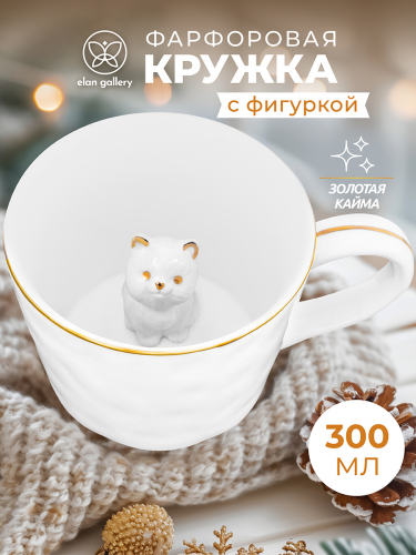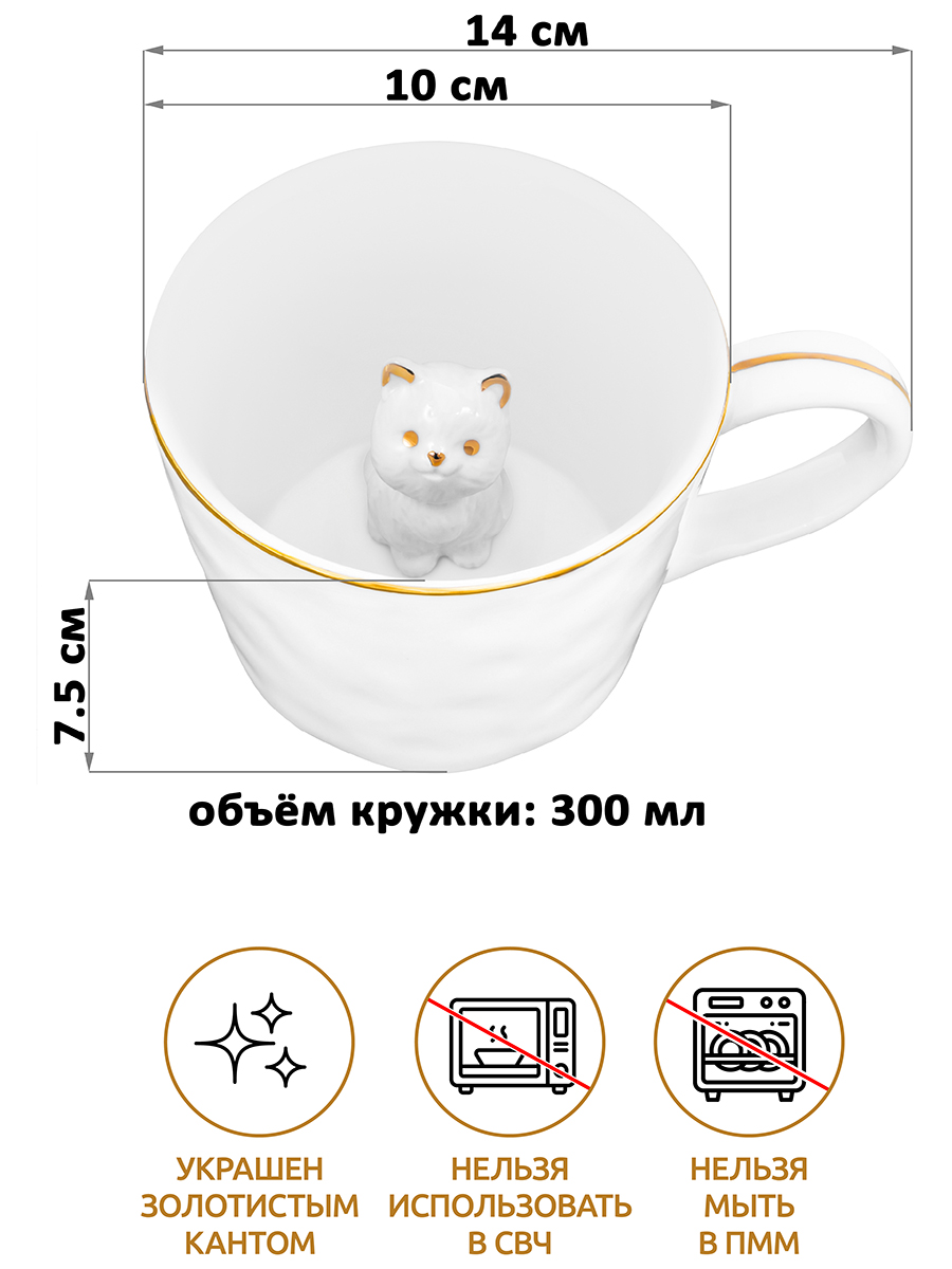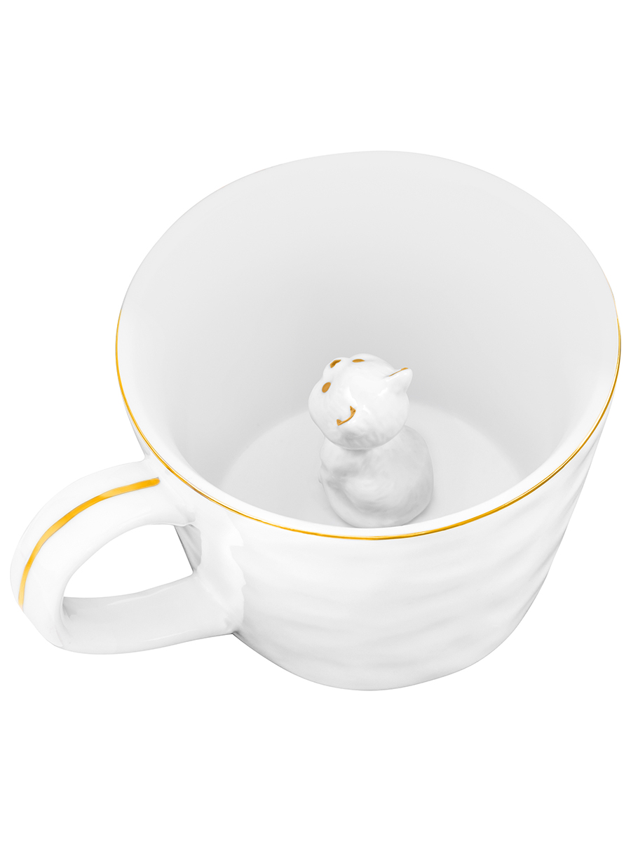 БЫЛО 668 руб! Кружка 300 мл 14*10*7,5 см "Котенок" с фигуркой внутри, белый с золотом, фарфор