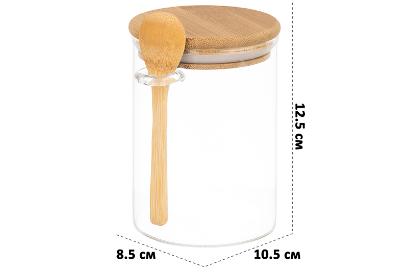 Банка для хранения Crystal glass объемом 550 мл с ложкой в комплекте подойдет для хранения сыпучих продуктов и сладостей: варенья, джема или мёда. Размер изделия 10,5х8,5х12,5 см. Для ложечки есть специальный держатель на стенке. Благодаря такому решению вы можете насыпать сахар в кофе или чай, не используя дополнительные кухонные приборы. Баночка выполнена из боросиликатного стекла и станет незаменимым помощником для организации системы хранения любых продуктов. Ёмкость герметичная: имеет крышку из натурального бамбука с силиконовым уплотнителем. Храните в ней сахарные кубики и любые сладости, например, конфеты или печенье. Универсальный контейнер подходит для любой еды, удобен для круп или пряностей. Благодаря прозрачным стенкам позволяет легко определить содержимое, экономя ваше время и позволяя вовремя пополнять запасы. Храните в ней орехи, сухофрукты или сахар – бамбуковая крышка надёжно защитит от пыли и не впитывает запахи. Стеклянная ёмкость стильно выглядит и подходит для эстетичного хранения специй и приправ даже на открытых полках и столе. Не займёт много места в кухонном шкафу. Можно использовать для сервировки вместо медовницы или сахарницы, а также для хранения соли. Крышка плотно закрывается благодаря силикону в составе. Хранить вертикально. Бамбук нельзя замачивать! Без крышки и ложки можно использовать в микроволновой печи и посудомоечной машине, потому что баночка выполнена из жаропрочного стекла. Поставляется в стильной картонной коробке. Благодаря красочной коробочке вам не понадобится дополнительная подарочная упаковка. Станет чудесным подарком для любой хозяйки! Банка для хранения из серии посуды Crystal glass станет удобным дополнением вашей кухни и настоящим украшением интерьера! В коллекции Elan Gallery можно найти много товаров для дома, посуды и столового инвентаря на любой вкус, которые помогут создать уют в квартире и на даче. Ознакомьтесь со всей коллекцией бренда!