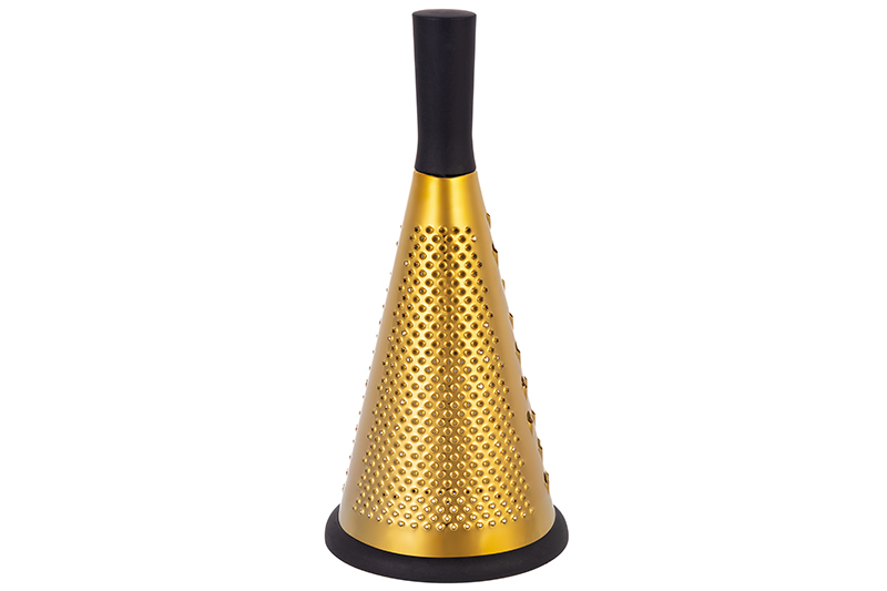 Трёхсторонняя круглая тёрка 12х12х26,5 см имеет 3 рабочие поверхности для разных задач. Шинкуйте, натирайте и измельчайте разные продукты, от овощей и фруктов до сыра и имбиря. Это кухонный инвентарь фигурной формы, который станет незаменимым помощником в приготовлении супа и готовки любых других блюд. Благодаря стильному дизайну и красивому золотистому цвету станет украшением вашей кухни! Используйте её как сыротёрку и овощетёрку. Это универсальное приспособление поможет подготовить шоколадную крошку для десерта, а также приготовить корейскую морковь или мелко натереть чеснок, капусту и картофель. Аксессуар подойдёт для нарезки мелких ингредиентов для салатов. Создавайте кулинарные шедевры из шоколада и кокосовой стружки! Многофункциональная тёрка устойчива и не скользит благодаря прорезиненному основанию. Основание съёмное: легко отмывается после использования. Тёрку удобно держать благодаря ручке длиной 7,5 см. Не подходит для использования в посудомоечной машине. Станет удобным дополнением вашей кухни и помощником в приготовлении множества вкусных блюд! Золотая тёрка — это не просто удобный инструмент, она станет полезным подарком для любой хозяйки! В коллекции бренда Elan Gallery можно найти красивую посуду, кухонную утварь и товары для дома. Здесь есть любые мелочи и кухонные принадлежности для создания комфорта в квартире и на даче!