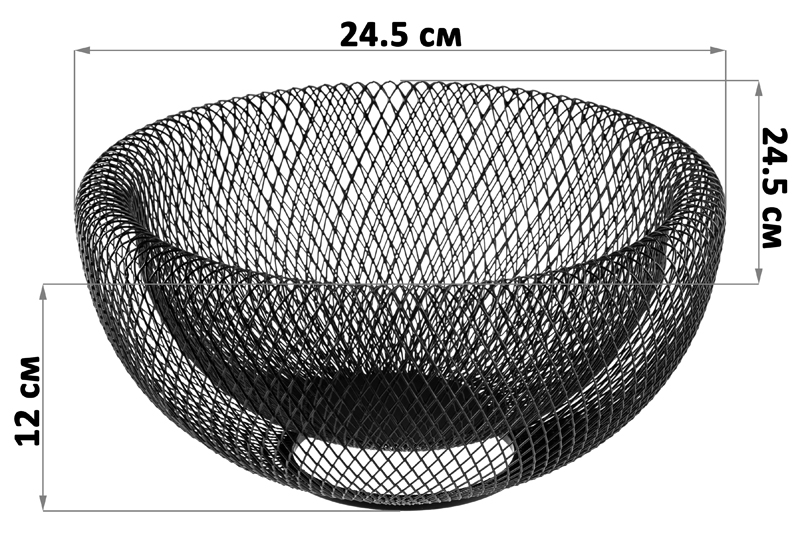 Корзина для фруктов ELCASA "Чёрная" размером 24,5х24,5х12 см выполнена из прочного металла и обладает оригинальным геометрическим дизайном. Фруктовая ваза представляет собой изящную чашу в виде металлической сетки. Фруктовница эстетично впишется в самые разные стили интерьера: лофт, сканди, минимализм. Металлическое блюдо – это универсальное решение для интерьера вашего дома или офиса. Можно разместить в вазе фрукты на кухне, а также украсить корзинкой гостиную или приёмную. Удобный кухонный аксессуар для сервировки овощей и фруктов поможет организовать порядок на вашей кухне. Сервировочная фруктовая подставка не только дополнит декор праздничного стола, но и подойдет для пикника. Такая стильная посуда порадует ваших гостей и сделает застолье еще приятнее! Набор не подходит для ПММ. Круглая настольная корзина для фруктов станет отличным подарком для женщин на любой праздник. Подарите её маме, бабушке, сестре – такой вещи будет рада каждая хозяйка. Сетчатая корзина для фруктов сможет стать настоящим украшением вашей кухни или приятным подарком для родных и близких!