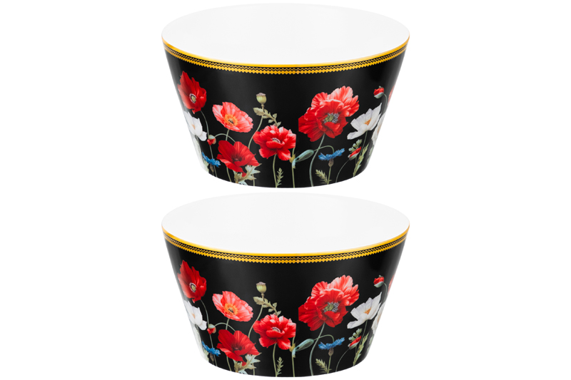 БЫЛО 766 руб! Набор 2 салатников 600 мл 13*13*7,5 см "Маки на черном" NEW BONE CHINA