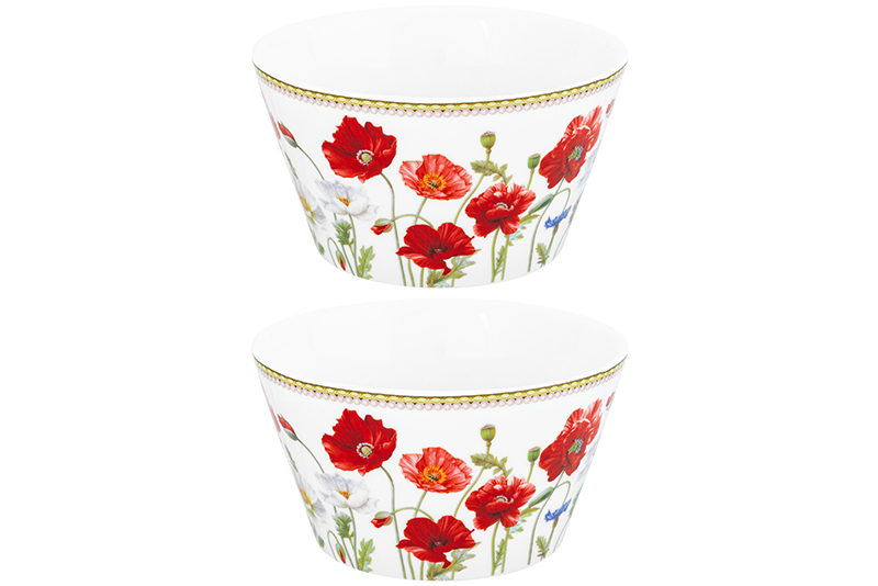 БЫЛО 766 руб! Набор 2 салатников 600 мл 13*13*7,5 см "Маки" NEW BONE CHINA