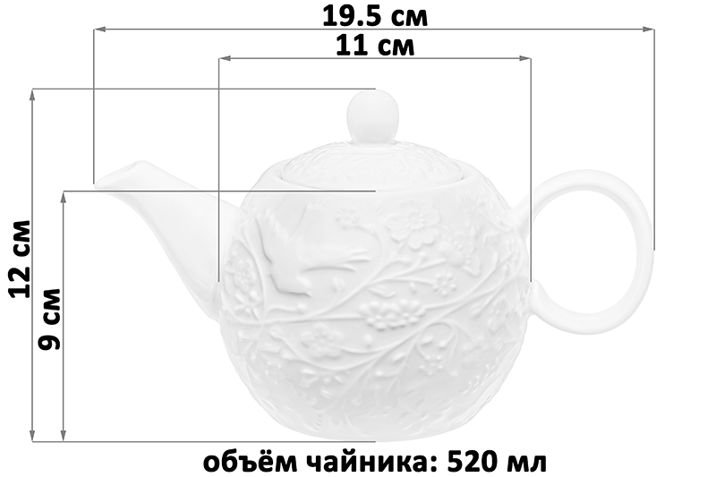 Чайник из серии "Райский сад" от бренда Elan Gallery предназначен для эстетичной сервировки вашего стола. Размер ёмкости – 19,5х11х12 см, объём – 520 мл. Выполнен из высококачественного белого фарфора. Он не впитывает цвет напитков и легко отмывается, благодаря чему надолго сохраняет свою белизну. Поверхность изделия украшают изящные рельефные узоры с изображениями птиц и лиственных веточек. Декоративный чайничек подходит для ежедневного заваривания и станет незаменимой составляющей любого чаепития. Фильтр в виде маленьких отверстий в стенке позволит наслаждаться ароматной заваркой без попадания мелких чаинок. Крышка прочно держится на заварнике благодаря язычку. Вместительный заварочник позволит наполнить множество кружек за раз, практично дополняя большое застолье! Подайте его к столу, чтобы насладиться чаем с конфетами, шоколадом и другими сладостями. Он привнесёт эстетику в организацию чайной церемонии. Благодаря лаконичному дизайну чайник подойдёт под интерьер любой кухни, столовой или гостиной. Не рекомендуется применять абразивные моющие средства. Подходит для использования в посудомоечной машине и микроволновой печи. Поставляется в дизайнерской картонной коробке – благодаря ей вам не потребуется дополнительная подарочная упаковка. Фарфоровая сервировочная посуда станет чудесным подарком на любой праздник для тех, кто ценит сочетание практичности и красоты. Серия "Райский сад" от бренда Элан Галерея станет украшением любого кухонного инвентаря и позволит собрать красивый сервиз в едином стиле!
