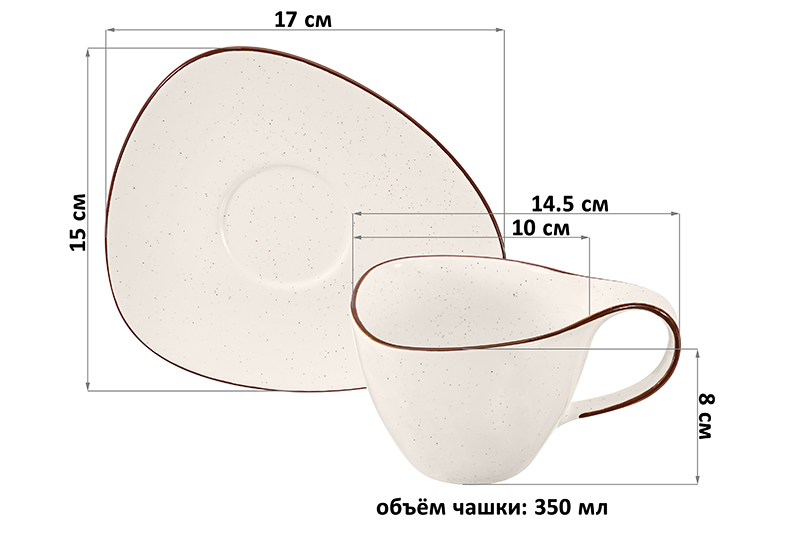 Чайная пара Elan Gallery "Терра" выполнена фарфора. В набор входят: чашка размером 14,5х10х8 см и объёмом 350 мл, блюдце 17х15х2 см. Серия фарфоровой посуды «Терра» – это погружение в атмосферу прибрежной лёгкости, тёплых песочных пляжей и природной гармонии. Белую поверхность украшает россыпь чёрных крапинок, а коричневый кант придаёт изделиям глубину. Блюдечко имеет оригинальную фигурную форму. Кружка подходит ценителям чая и кофе, которые любят пить из красивой посуды. Чайный инвентарь украсит ваш стол своим стильным дизайном как на праздник, так и в будни. Это отличный вариант для того, чтобы согреться горячим чаем зимой и освежиться прохладным лимонадом летом. Наслаждайтесь любыми кофейными напитками: эспрессо, капучино или латте. В отличие от керамики фарфор не впитывает цвет и запах напитков, легко отмывается и сохраняет свой привлекательный вид долгие годы. Используйте фарфоровую тарелку как подставку для кружечки, чтобы порадовать гостей изящной сервировкой. Положите на неё кусочек торта, домашнего пирога или пирожное. Тарелочка подойдёт не только для десерта, но и закусок: сырной нарезки, сырокопчёной колбасы или свежих овощей и зелени. Не рекомендуется применять абразивные моющие средства. Набор можно использовать в микроволновой печи и посудомоечной машине. Поставляется в красивой картонной коробке. Станет приятным подарком вашим близким на любой праздник. Благодаря стильной коробочке не понадобится подарочная упаковка. Чашка с десертной тарелочкой станут украшением вашей кухни или приятным сюрпризом для близких. В коллекции бренда Элан Галерея представлены товары для дома на любой вкус, в том числе красивая посуда для эстетичного чаепития. Коллекция «Терра» наполнит ваш дом свежестью и естественным уютом, создавая пространство для незабываемых мгновений.
