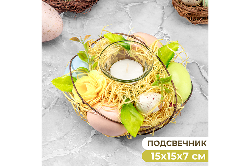 БЫЛО 859 руб! Пасхальное украшение подсвечник 15*15*7 см "Воздушная коллекция" на 1 свечу