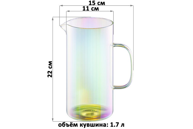 Кувшин с ионным покрытием от Elan Gallery из серии Crystal glass предназначен для эстетичной сервировки стола. Размер изделия – 15х11х22 см, объём – 1,7 литра. Выполнен из жаропрочного боросиликатного стекла: оно выдерживает от -20 до +150 градусов и позволит заваривать чай, а затем остужать в той же ёмкости. Не имеет в составе вредных веществ, не впитывает запахи и вкусы. Подходит для холодных и горячих напитков. Используйте ёмкость для хранения и подачи чистой воды или алкогольных напитков на вечеринке. Это идеальный вариант для того, чтобы развеять жару холодным лимонадом или свежим ягодным компотом. Преподнесите к праздничному столу самодельные алкогольные и безалкогольные коктейли. Благодаря жаропрочному стеклу кувшин подходит для сервировки горячего ароматного глинтвейна с фруктами. Насладитесь тёплыми напитками зимой или дождливой осенью! Используйте сосуд как молочник – он послужит отличной альтернативой скучным пакетам молока. Прозрачный кувшин с перламутровыми переливами станет изящным акцентом любой подачи. Наполненный цветными напитками и кусочками фруктов и ягод, он придаст вашему застолью неповторимую атмосферу! Не рекомендуется применять абразивные моющие средства. Нельзя использовать в посудомоечной машине. Можно использовать в микроволновой печи. Поставляется в дизайнерской картонной коробке – благодаря ей вам не потребуется дополнительная подарочная упаковка. В серии Crystal glass можно найти много разнообразных кувшинов и графинов, которые подходят для горячей жидкости. Красивая посуда, кухонный инвентарь и товары для дома от Elan Gallery позволят создать уют на вашей кухне или в столовой!