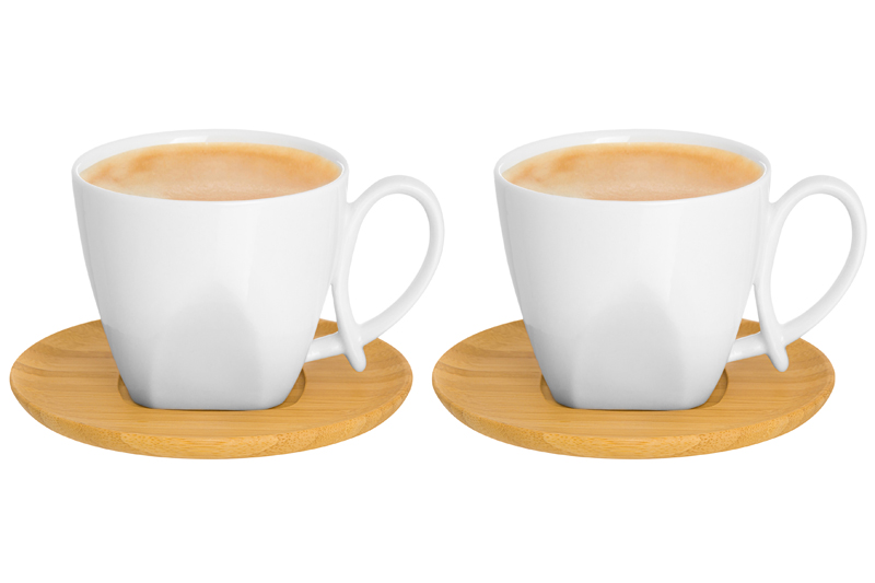БЫЛО 884 руб! Чашка для капучино и кофе латте 200 мл 11*7,5*7 см "Айсберг" + дерев. подставка (2 шт.)