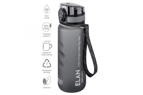Бутылка для воды и другой жидкости Elan Gallery "Style Matte" небесного синего оттенка имеет углубления для пальцев и мерную шкалу. Следите за водным балансом и ведите здоровый и активный образ жизни! Объём ёмкости – 500 мл. Питьевая бутылочка выполнена из качественного пластика Usa Tritan. Не содержит бисфенол А и полностью безопасна для здоровья. Подходит для холодных и горячих напитков: воды, сока или чая. Бутыль для питья оснащена ситечком, поильником и клапаном (замком) на крышке. Дорожная бутылка имеет защиту от случайного открывания в сумке или рюкзаке. Имеет ремешок для переноски, что удобно для прогулки или бега. Стильный инвентарь станет незаменимой вещью на отдыхе, в путешествиях или спортзале. Бутылку на ремне с матовым покрытием удобно использовать во время поездок на велосипеде, в автомобиле или во время игры в футбол. Фляга для воды Style matte многоразовая, прочная и легкая, её удобно брать в дорогу или тренажёрный зал. Можно использовать как спорт бутылку для фитнеса и велоспорта, туризма, а также как детскую для школьника на занятиях физкультурой. Не впитывает запахи, не влияет на вкус напитков и легко отмывается. Красивая пластиковая бутылка поможет утолить жажду охлаждённым лимонадом на прогулке, тренировке или в школе. Не подходит для СВЧ, ПММ, стерилизатора. Станет приятным подарком мужчинам и женщинам. Такой сюрприз особенно придётся по вкусу спортсменам: футболисту или любительнице гимнастики и танцев. Станет прекрасным дополнением вашей коллекции походного и туристического инвентаря. В коллекции Elan Gallery представлено много посуды и товаров для дома на любой вкус. Спортивные аксессуары серии Style matte помогут следить за водным балансом и пить любимые напитки, где бы вы ни находились!