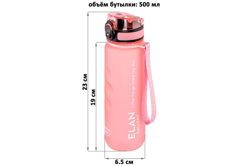 Бутылка для воды и другой жидкости Elan Gallery "Style Matte" розового цвета (пыльная роза) имеет углубления для пальцев и мерную шкалу. Следите за водным балансом и ведите здоровый и активный образ жизни! Объём ёмкости – 500 мл. Питьевая бутылочка выполнена из качественного пластика Usa Tritan. Не содержит бисфенол А и полностью безопасна для здоровья. Подходит для холодных и горячих напитков: воды, сока или чая. Бутыль для питья оснащена ситечком, поильником и клапаном (замком) на крышке. Дорожная бутылка имеет защиту от случайного открывания в сумке или рюкзаке. Имеет ремешок для переноски, что удобно для прогулки или бега. Стильный инвентарь станет незаменимой вещью на отдыхе, в путешествиях или спортзале. Бутылку на ремне с матовым покрытием удобно использовать во время поездок на велосипеде, в автомобиле или во время игры в футбол. Фляга для воды Style matte многоразовая, прочная и легкая, её удобно брать в дорогу или тренажёрный зал. Можно использовать как спорт бутылку для фитнеса и велоспорта, туризма, а также как детскую для школьника на занятиях физкультурой. Не впитывает запахи, не влияет на вкус напитков и легко отмывается. Красивая пластиковая бутылка поможет утолить жажду охлаждённым лимонадом на прогулке, тренировке или в школе. Не подходит для СВЧ, ПММ, стерилизатора. Станет приятным подарком мужчинам и женщинам. Такой сюрприз особенно придётся по вкусу спортсменам: футболисту или любительнице гимнастики и танцев. Станет прекрасным дополнением вашей коллекции походного и туристического инвентаря. В коллекции Elan Gallery представлено много посуды и товаров для дома на любой вкус. Спортивные аксессуары серии Style matte помогут следить за водным балансом и пить любимые напитки, где бы вы ни находились!