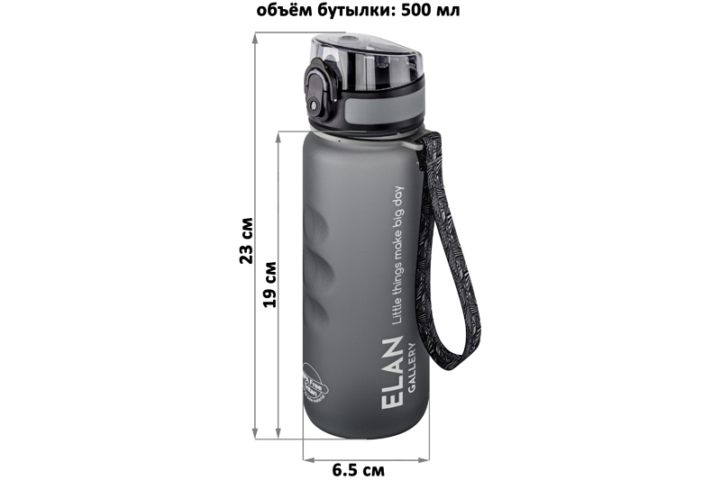 Бутылка для воды и другой жидкости Elan Gallery "Style Matte" серого цвета имеет углубления для пальцев и мерную шкалу. Следите за водным балансом и ведите здоровый и активный образ жизни! Объём ёмкости – 500 мл. Питьевая бутылочка выполнена из качественного пластика Usa Tritan. Не содержит бисфенол А и полностью безопасна для здоровья. Подходит для холодных и горячих напитков: воды, сока или чая. Бутыль для питья оснащена ситечком, поильником и клапаном (замком) на крышке. Дорожная бутылка имеет защиту от случайного открывания в сумке или рюкзаке. Имеет ремешок для переноски, что удобно для прогулки или бега. Стильный инвентарь станет незаменимой вещью на отдыхе, в путешествиях или спортзале. Бутылку на ремне с матовым покрытием удобно использовать во время поездок на велосипеде, в автомобиле или во время игры в футбол. Фляга для воды Style matte многоразовая, прочная и легкая, её удобно брать в дорогу или тренажёрный зал. Можно использовать как спорт бутылку для фитнеса и велоспорта, туризма, а также как детскую для школьника на занятиях физкультурой. Не впитывает запахи, не влияет на вкус напитков и легко отмывается. Красивая пластиковая бутылка поможет утолить жажду охлаждённым лимонадом на прогулке, тренировке или в школе. Не подходит для СВЧ, ПММ, стерилизатора. Станет приятным подарком мужчинам и женщинам. Такой сюрприз особенно придётся по вкусу спортсменам: футболисту или любительнице гимнастики и танцев. Станет прекрасным дополнением вашей коллекции походного и туристического инвентаря. В коллекции Elan Gallery представлено много посуды и товаров для дома на любой вкус. Спортивные аксессуары серии Style matte помогут следить за водным балансом и пить любимые напитки, где бы вы ни находились!