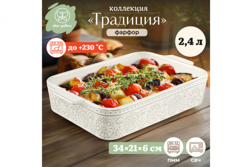 Форма для запекания Elan Gallery "Традиция" объемом 1,3 литра выполнена из фарфора. Размер 30,5×17,2×5,5 см. Внутренний размер 24,2х15,8х4,8 см. Размер без ручек 25,2х17,2х5,5 см, размер дна 24х16,4 см. Фарфоровая ёмкость мятного цвета подходит для выпекания в духовке и подачи готового блюда на стол в той же форме. В ней получится чудесная лазанья или выпечка. "Традиция" – это коллекция посуды для запекания, вдохновлённая уютом домашней кухни. Мягкие очертания, нежные оттенки и рельефные узоры навевают атмосферу безмятежности и пробуждают светлые воспоминания. Изделия созданы для любимых блюд по семейным рецептам, которые собирают близких за одним столом. Глубокая тарелка прямоугольной формы удобна для приготовления различных кулинарных шедевров: мясных и овощных запеканок, а также пирога и заливного. Блюдо нежного зелёного цвета станет универсальным предметом на кухне: можно использовать для приготовления и сервировки еды. Испеките нежный десерт из творога, а также приготовьте чизкейк, кекс или бисквит. Любители кондитерских изделий оценят удобство при создании творожной выпечки или тирамису. Используйте как контейнер для хранения остатков еды, прикрыв фольгой, либо в роли сервировочного лотка для подачи закусок, хлеба и горячих блюд из мяса и рыбы. Можно использовать как шубницу – для приготовления классической селёдки под шубой или подачи салата. Инструкция: не рекомендуется применять абразивные моющие средства. Избегать резких перепадов температур и механических повреждений. Можно использовать в микроволновой печи, посудомоечной машине и духовом шкафу при температуре до 230 градусов. Запрещено использовать на плите и открытом огне. Кухонный инвентарь станет полезным подарком на праздник. Поставляется в стильной картонной коробке. Благодаря красочной коробочке не понадобится подарочная упаковка, если вы решите сделать сюрприз. В коллекции бренда Элан Галерея представлено много кухонной утвари и других товаров для дома. Выберите вариант на свой вкус!
