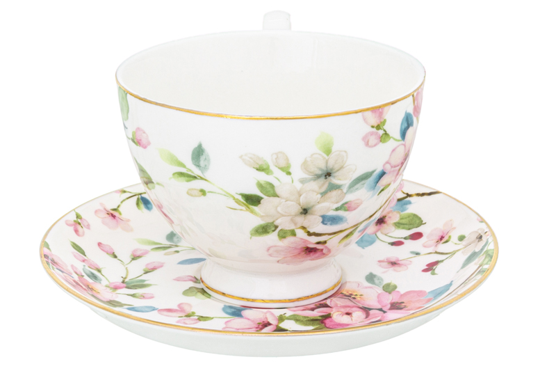 Чайная пара серии "Яблоневый цвет на белом" состоит из чашки объемом 300 мл и блюдца диаметром 15 см. Чайная пара поможет провести множество приятных чаепитий. Чашка и блюдце украшены розовыми цветами яблони на белом фоне и обрамлены золотым окаймлением. Выполнены из высококачественного фарфора New Bone China. Это фарфор нового поколения, не уступающий по качеству традиционному костяному фарфору, но при этом гораздо более экологичный в производстве. Чашка имеет изящную форму, а ее ручкой удобно пользоваться. Посуда с золотым окаймлением не подходит для использования в микроволновой печи и посудомоечной машине. Поставляется в подарочной упаковке. Чайная пара из серии посуды "Яблоневый цвет на белом" сможет стать настоящим украшением кухни или приятным подарком для ваших родных и близких!