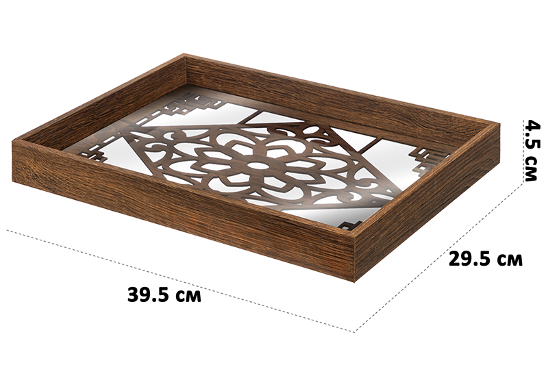 Прямоугольный поднос от бренда Elan Gallery "Узор" размером 39,5х29,5х4,5 см выполнен из прозрачного стекла. Декоративные элементы в виде резных узоров коричневого цвета выполнены из МДФ. Изделие подойдет для подачи блюд в разные комнаты и сервировки обеденного стола, а также украшения интерьера декоративными композициями. В спальне на подносе можно хранить косметику или журналы, поставив его на стол. Проведите уютный вечер на веранде с вином и фруктами, чайную церемонию с друзьями или устройте завтрак в постель. Поднос можно использовать как подставку для предметов декора. Создавайте красивые декоративные композиции со свечами, цветами и интерьерными аксессуарами. Многофункциональный поднос можно использовать для организации хранения. Разместите на кухне чай, кофе, специи и различную утварь. В спальне подойдёт для парфюмерии и косметических принадлежностей, а в прихожей под любые мелочи. Запрещено использовать в качестве подставки для раскаленных сковород, кастрюль, противней. Не рекомендуется применять абразивные моющие средства. Станет оригинальным подарком для любителей эстетичных вещей на любой праздник. В коллекции бренда Элан Галерея представлено много красивой посуды и стильных товаров для дома, выберите варианты на свой вкус!