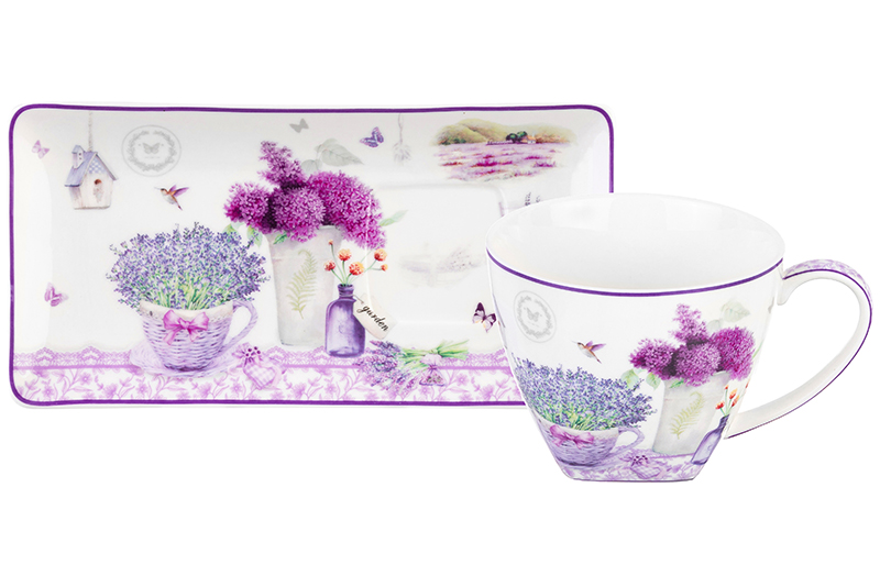 Чашка 250 мл с блюдцем для десерта 20*10*2 см "Лаванда" NEW BONE CHINA
