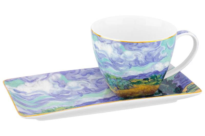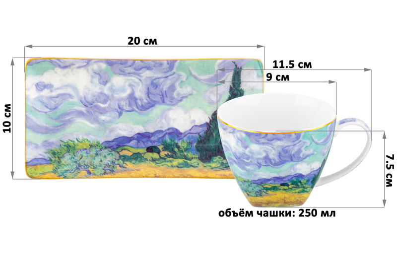 Чашка 250 мл с блюдцем для десерта 20*10*2 см "Пшеничное поле с кипарисами" NEW BONE CHINA